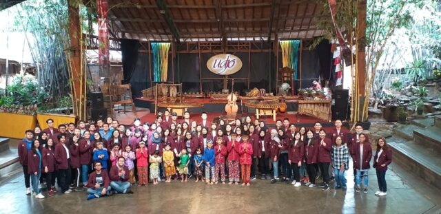 On 10th January 73 English Department students from Semester 1 travelled to Saung Mangudjo, in Bandung, West Java. This trip was part of their studies in Indonesian language, culture and society. Saung Mangudjo is a cultural centre that promotes the experience of Sundanese culture. The students enjoyed a performance of Indonesian music in the form of bamboo pipes called ‘Angklung’ as well as a puppet performance called ‘Wayang Golek’. This was followed by a late lunch of local Sundanese cuisine. Here are some photos from the event: