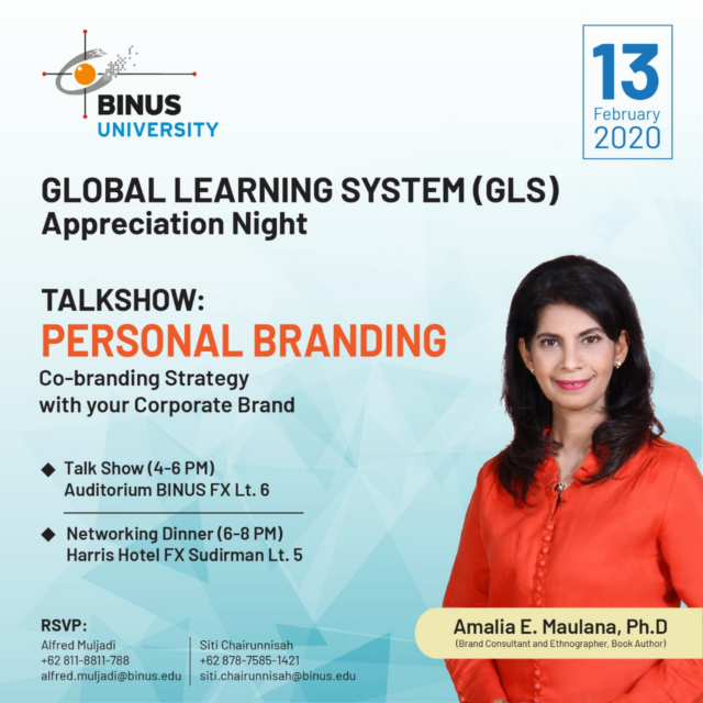 To appreciate our partners’ involvement in the Global Learning System ( GLS) program, Binus Global Office held two special programs on February 13th, 2020. GLS is a learning system where we include companies’ representations into our blended courses. In these courses, the GLS partners take part in online discussions, share ideas on some chosen topics, and answer questions from students, especially ones that would link theories with the companies’ praxis.