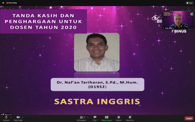 On Monday, November 2, Binus university held a special ceremony to appreciate its senior lecturers / faculty members who have dedicated their time, energy, and thoughts for Binus. Broadcasted live by Binus TV, the ceremony was attended by tens of senior invited faculty members and Binus leaders. Prof. Harjanto, the rector of Binus University, personally met the lecturers and handed them the tokens of appreciation.