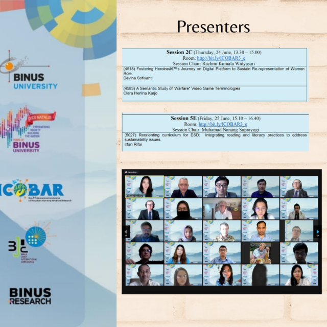 Some members of our department took part in the ICOBAR 2021 Conference on June 24 -25. Kak @sarasulaksono did a cool, calm, and confident job Mc-ing the international stage conference. Hats off Kak! Also, congratulations to Mahreen and @widadfairuznabilah for having presented their studies at the conference, along with other international scholars! (Ed.)