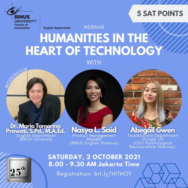 Humanities in the Heart of Technology – A Webinar Activities & Events Agenda Attend the webinar for the enriching insights and claim your SAT points! A mandatory webinar for English department’s Binusian 2025. Share It :