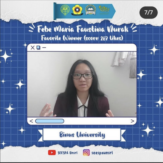 Congratulations Yasmin & Febe! Activities & Events Congratulations Yasmin ( B2024) and Febe Maria (B2025) for having won the 3rd position and the most favourite winners in a National English competition held in Universitas Sriwijaya, Palembang. Keep up the good work, girls! Share It :