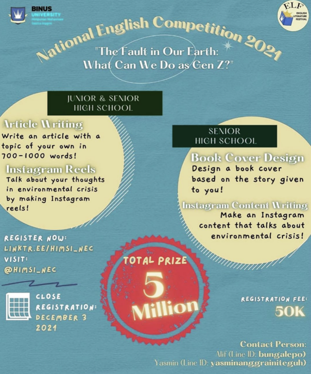 You’re all invited to join our annual National English Competition that would test your skills in using English for some specific purposes.