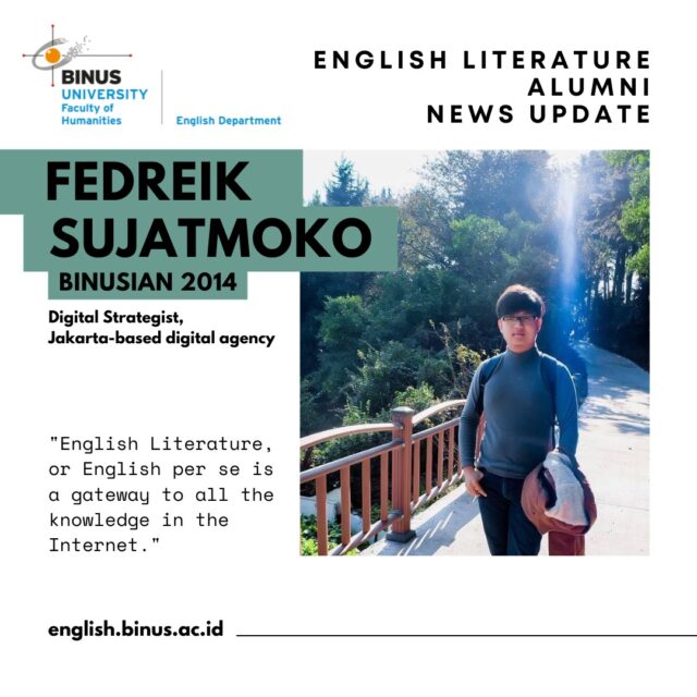 Alumni News Update: Fedreik Sujatmoko Alumni Stories Students & Alumni We can all agree with Fedreik on this one, can’t we? According to Statista.com, English is the most common language used on the internet. Around 25.9% of internet users are currently communicating and producing texts in English. Share It :
