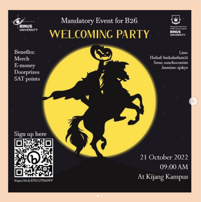 There will be special games, events, and even surprises waiting for you all! hohoho! The Welcoming Party has a theme of Halloween since the end of October is near! Don’t hesitate and note the date for the Party!