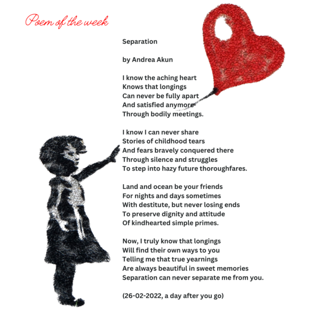 A poem is a window to one’s soul and a reflection ( and refraction ) of one’s deepest thoughts and emotions. For many of us, it’s theraphical and it heals past wounds. The following poem written by Dr. Andreas Akun reflects just that.