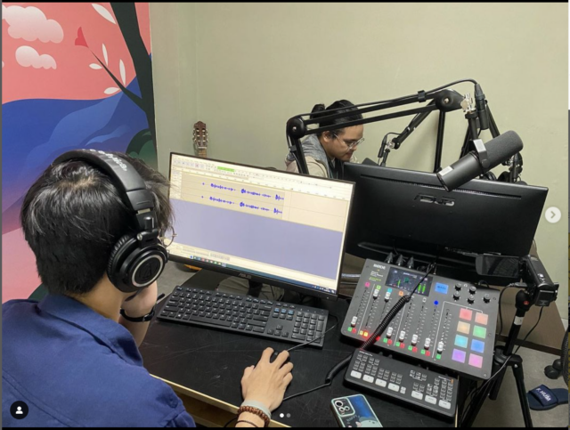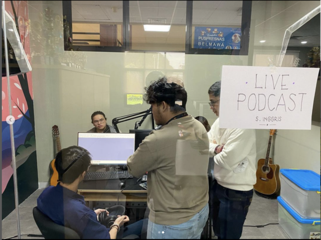 The Musical and the EDAP team work hand in hand to produce audiobooks at the @fhumanitiesbinusuniversity Podcast facility. In these pictures, they were readinga and recording a story written by a fellow English department student.