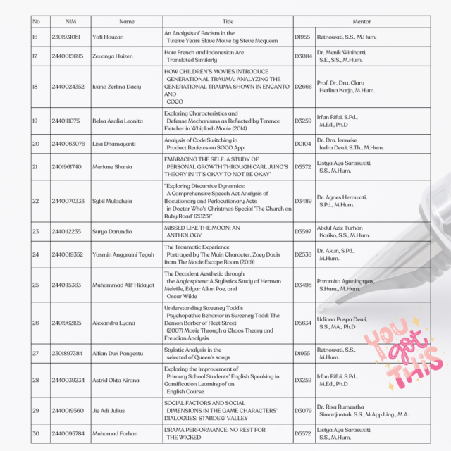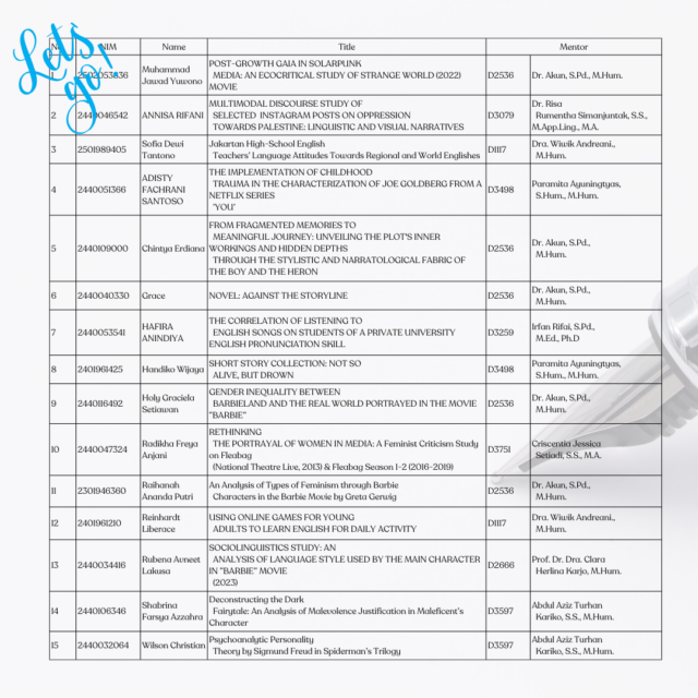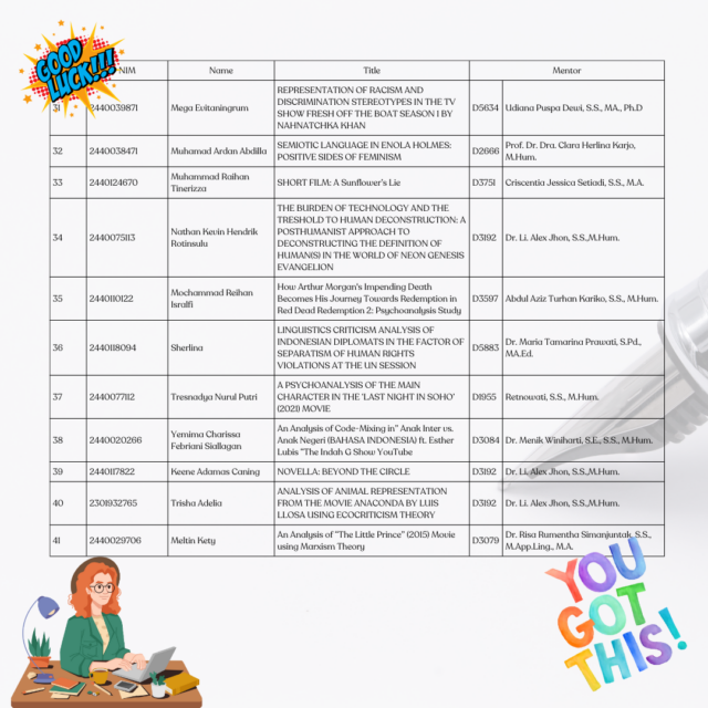 2024 Research / Creative Project Proposals and Advisors News Seniors, here is the list of approved exit project proposals. Contact your advisors and you can start the writing and production process. Share It :