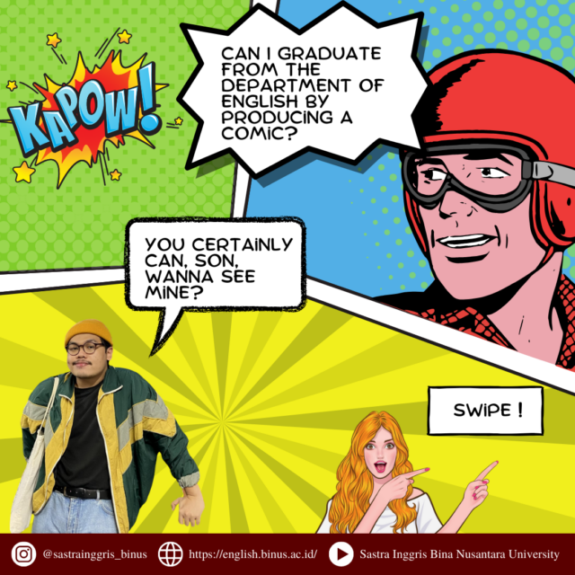 The department of English acknowledges comic as a means of multimodal storytelling and its significant role in society, thus beginning to allow students producing and publishing it as graduation / exit project since 2021. Here is one of the first comics produced by a student of our department, Alex.